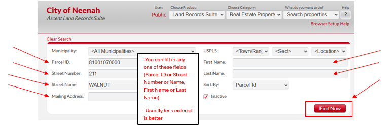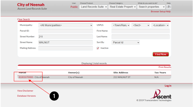 • When searching using a parcel ID, omit the dashes (-) between numbers. Also include the leading 8.