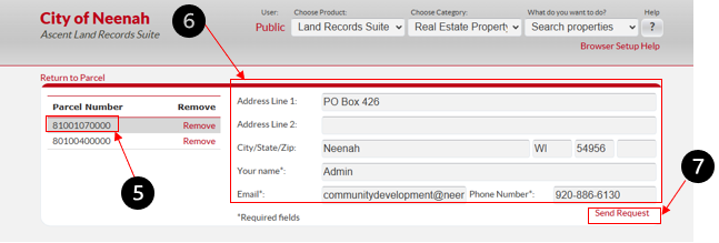 1. Verify the parcel number(s) you are changing the mailing address for. If there is a parcel number listed you do not wish to change, click “Remove” to take it off the list.